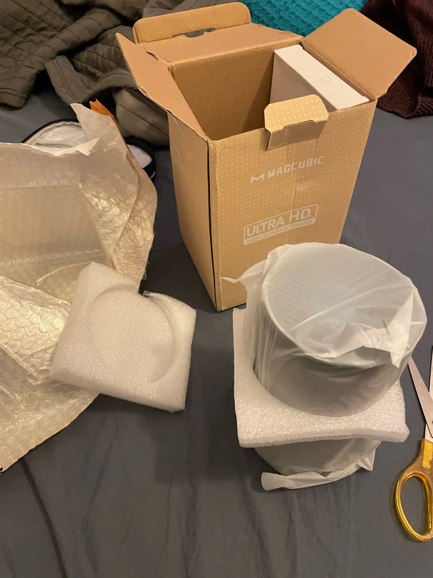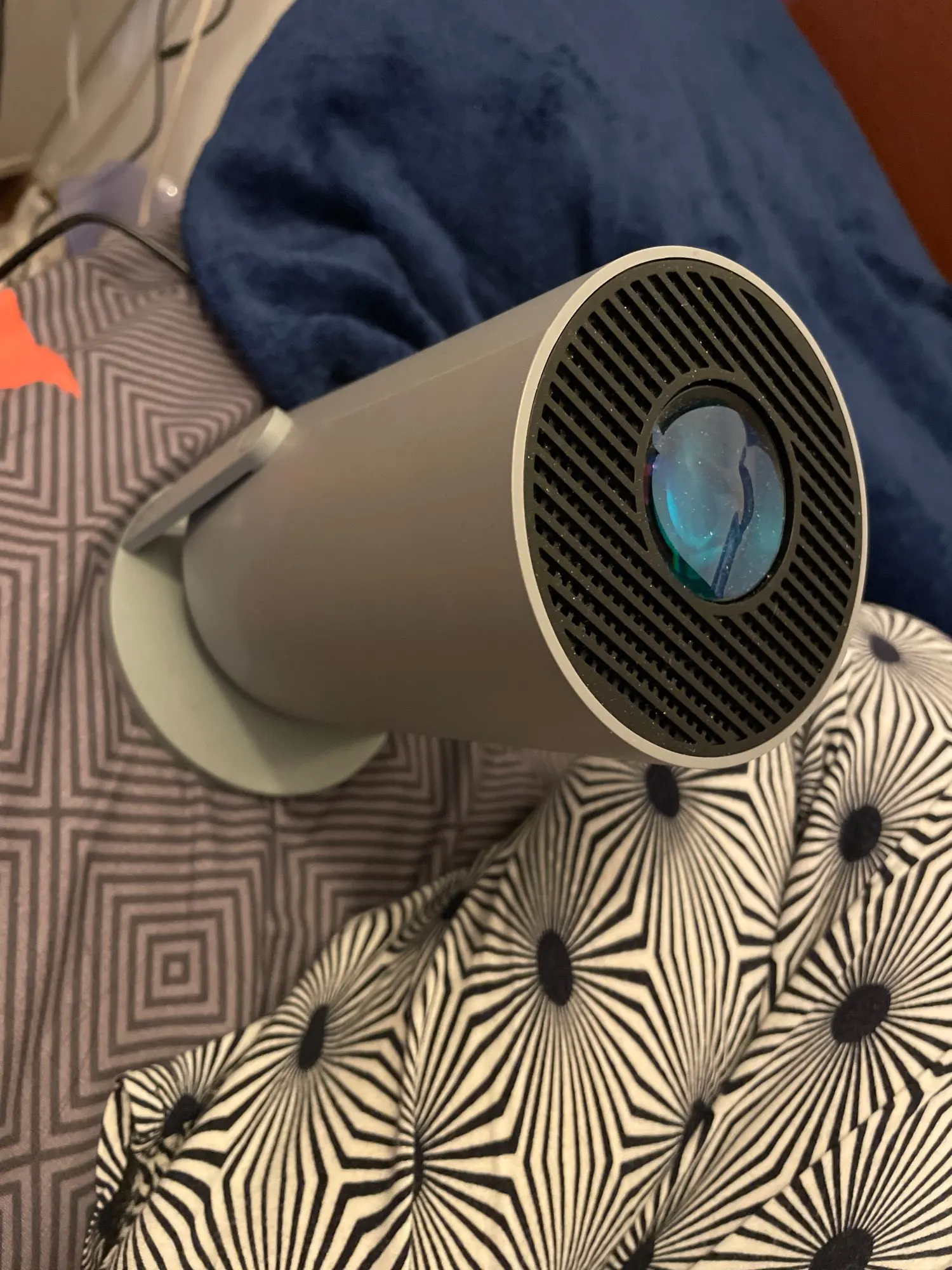 Finally, one of the most impressive features of this portable projector is its quiet operation. Unlike many traditional projectors that can be loud and distracting, this device runs quietly, allowing you to focus on your content without being interrupted by a noisy fan or motor. Whether you're enjoying a quiet evening indoors or hosting a gathering outdoors, the quiet operation ensures a seamless viewing experience, free from distractions.